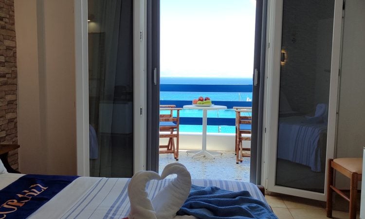 - Steps from the Shore: A literal 100-meter stroll to the crystal-clear Aegean.